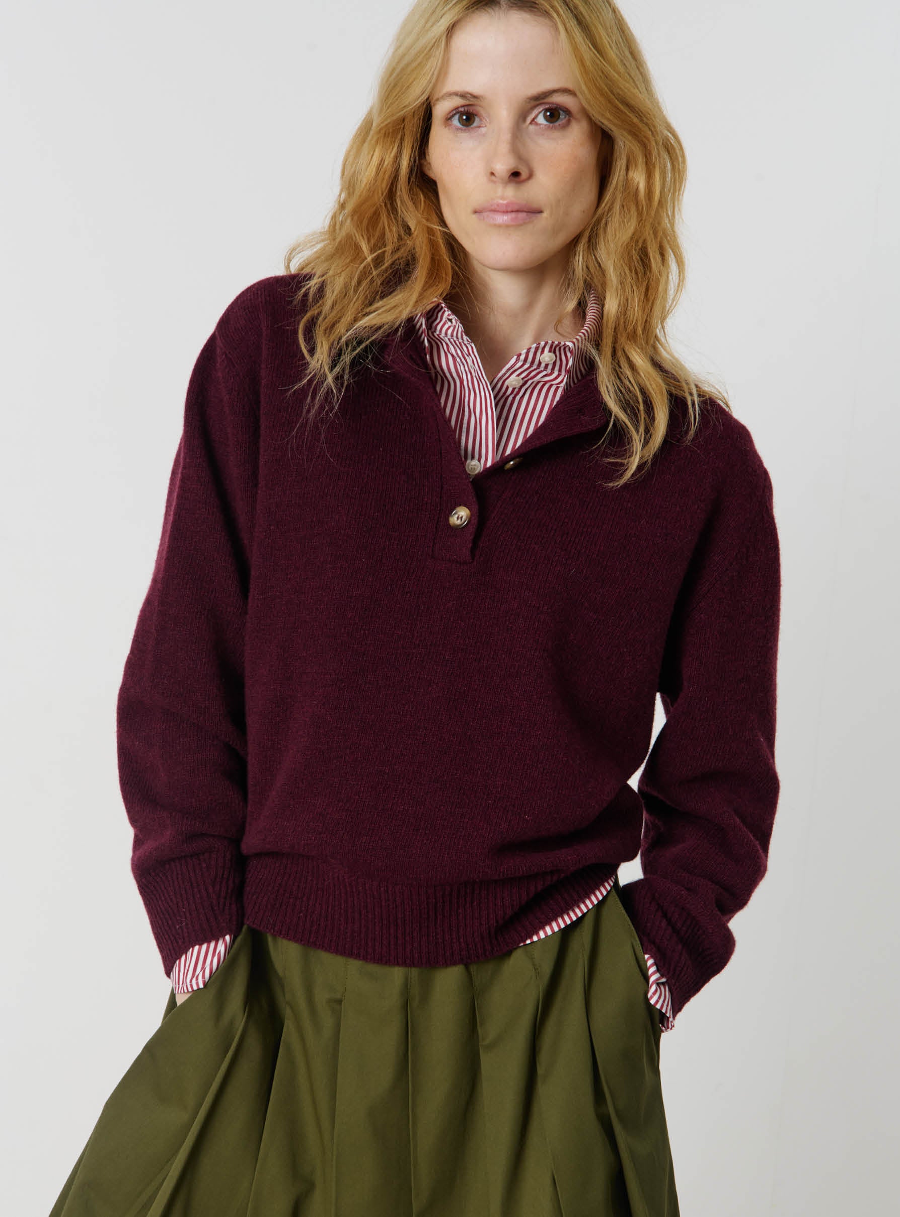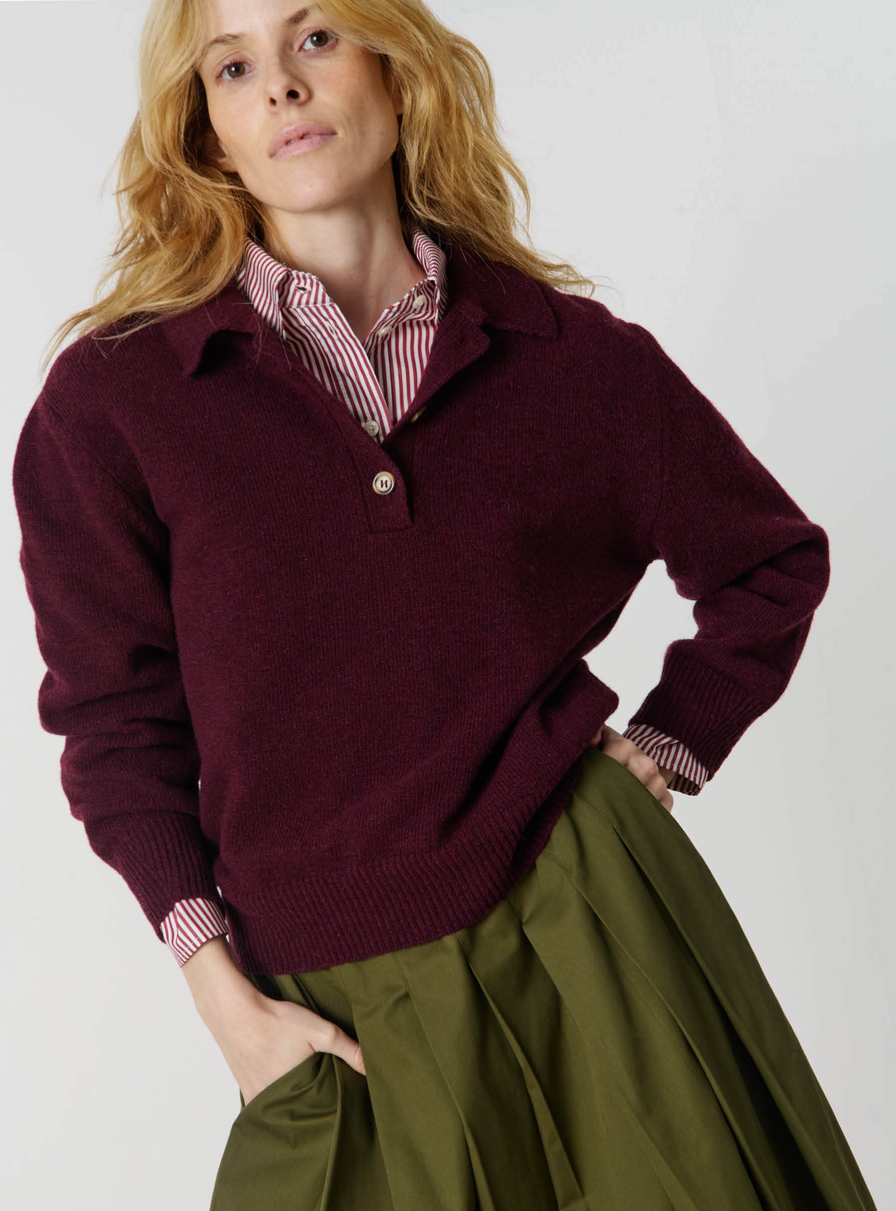 Polo col rond en maille, avec patte boutonnée 3 boutons.
