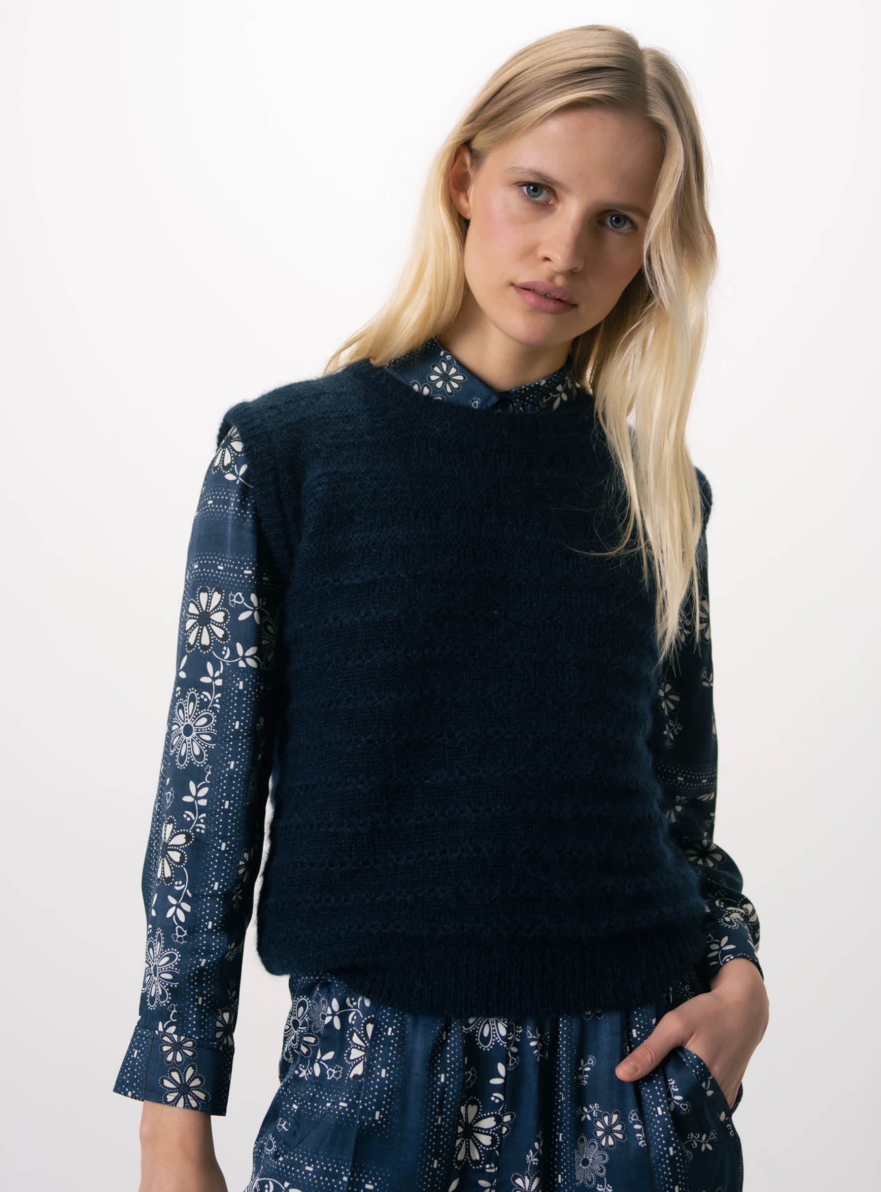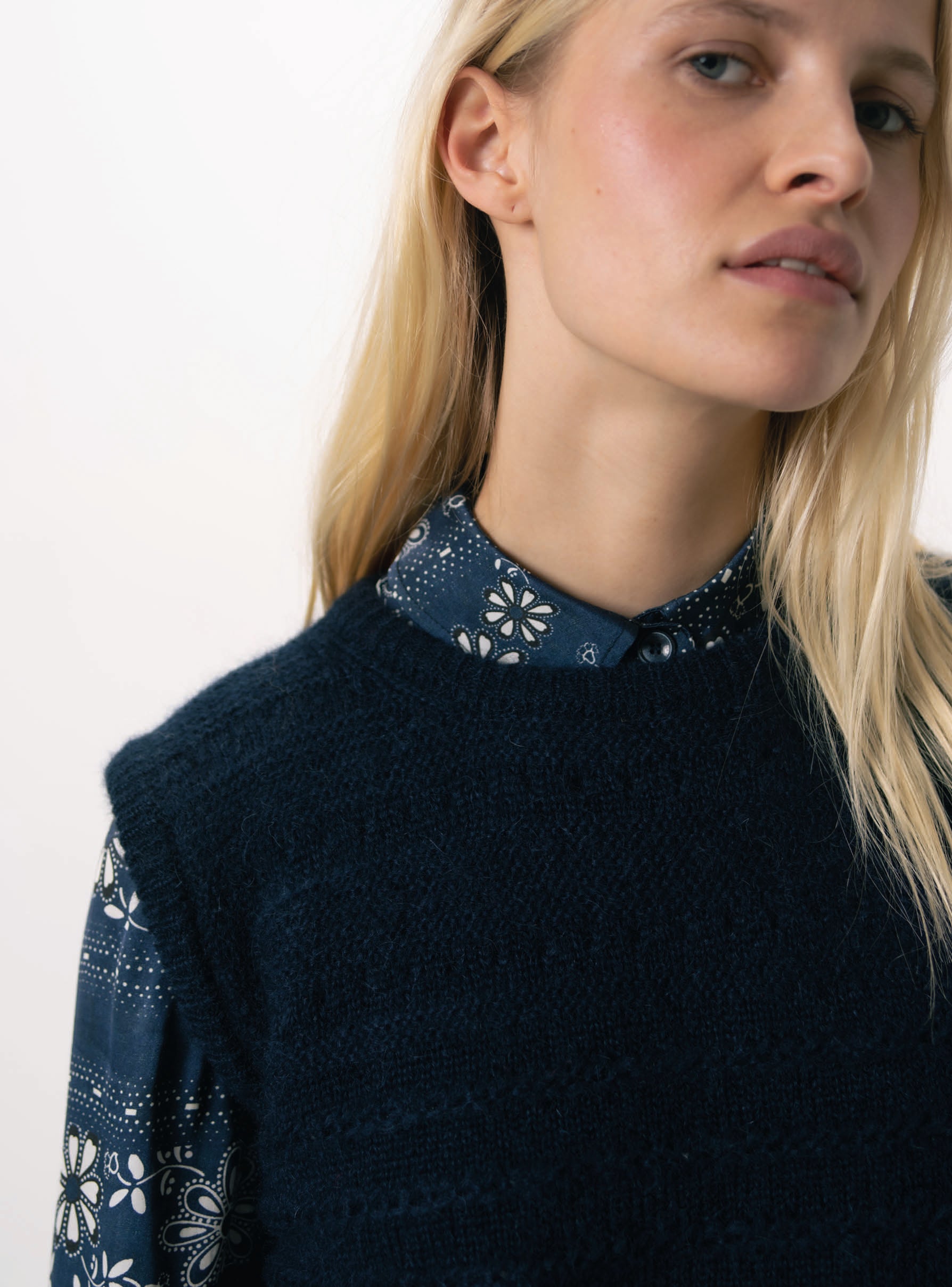 Point maille fantaisie dessinant des lignes horizontales avec de petits ajourés.