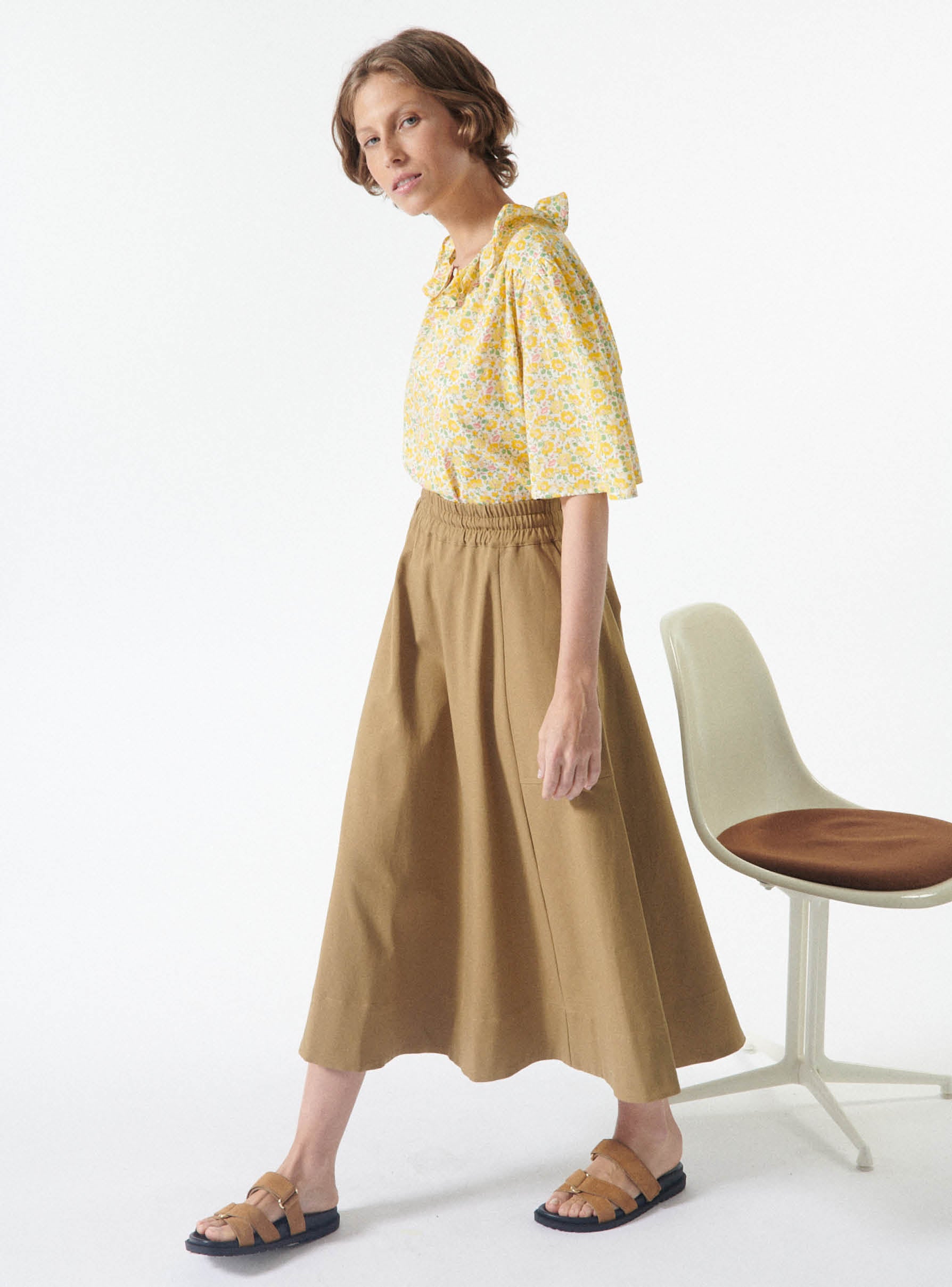 Volume évasé, forme arrondie dans le bas, large ourlet.