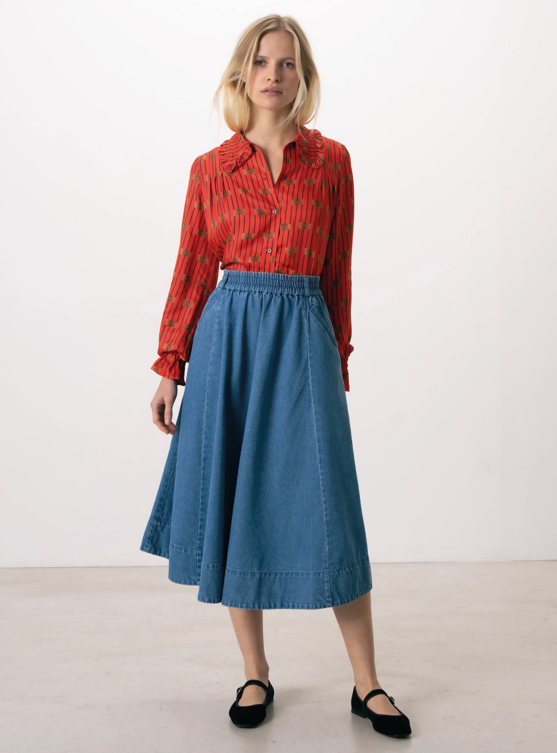 Jupe longue, taille haute.