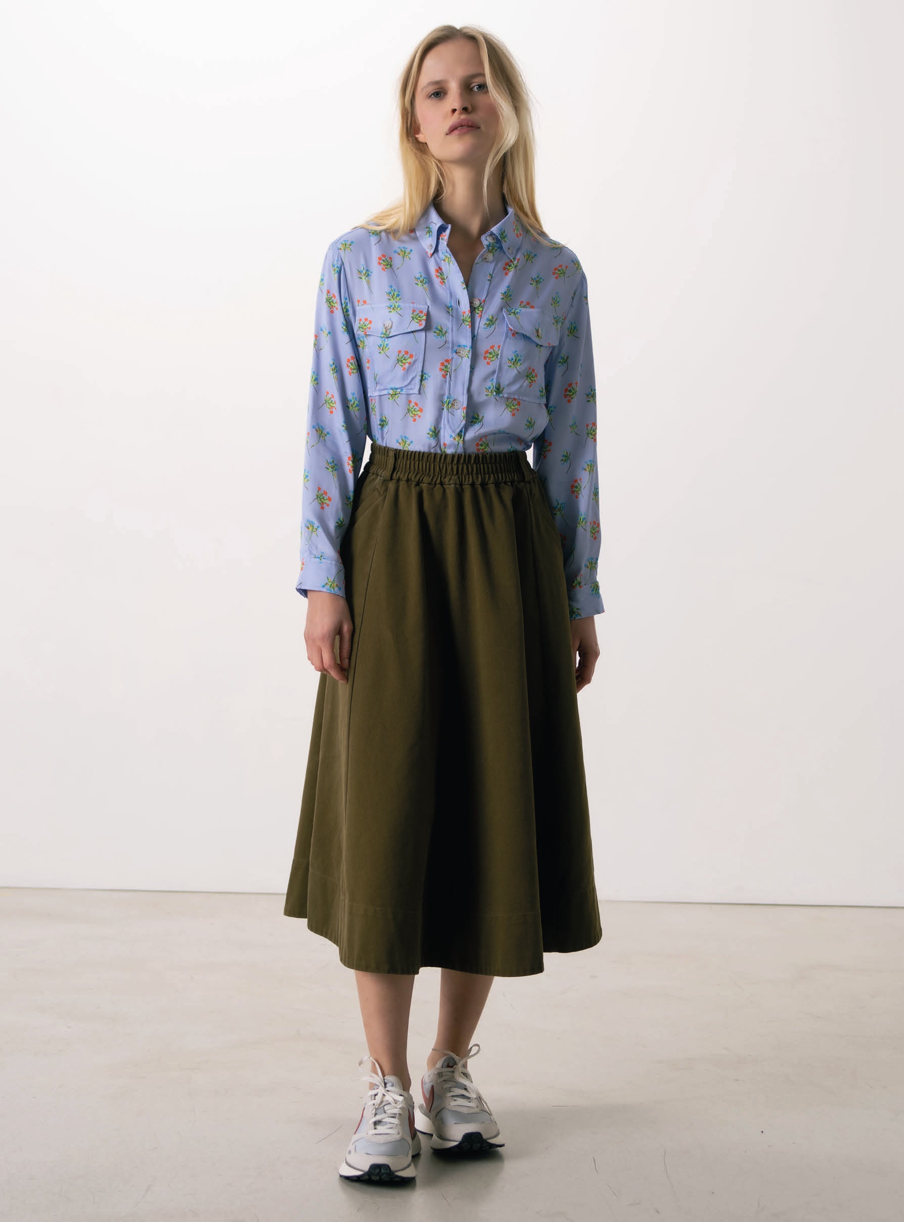 Twill viscose souple et fluide, aspect légèrement satiné, imprimé petits bouquets de fleurs.