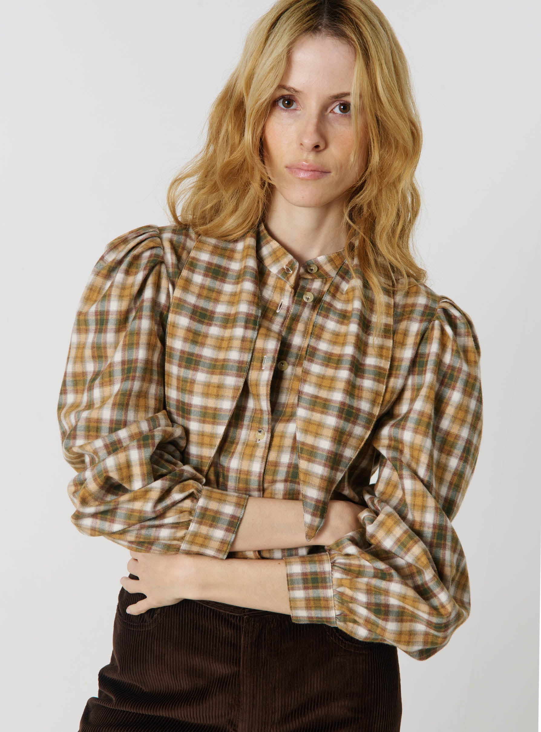 10 plis sur la tête de manche pour créer du volume. Manches ressérées dans le bas.