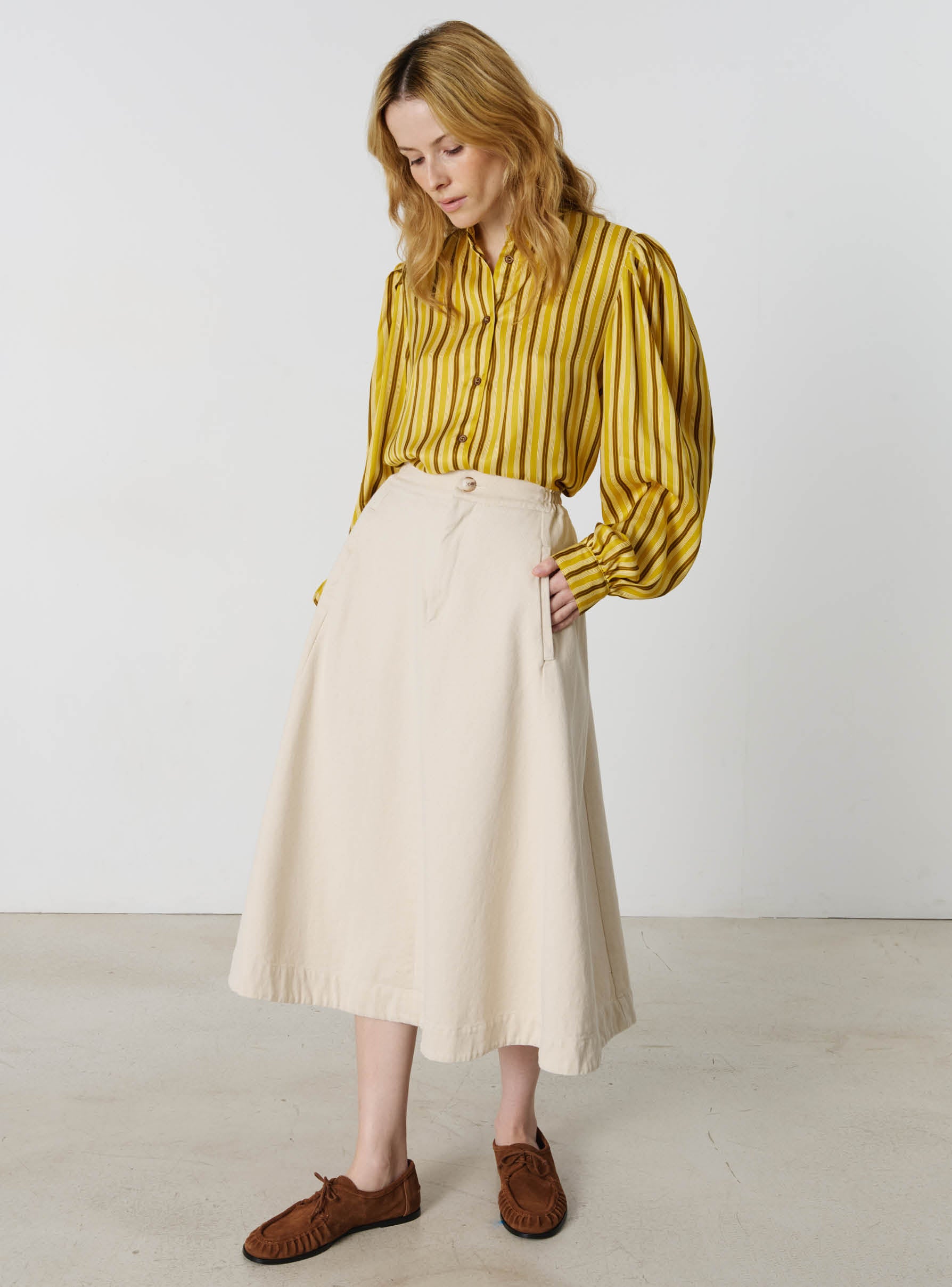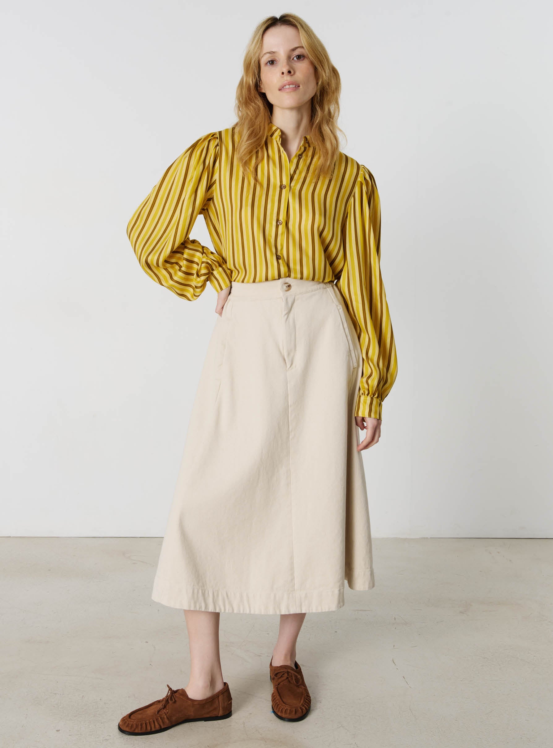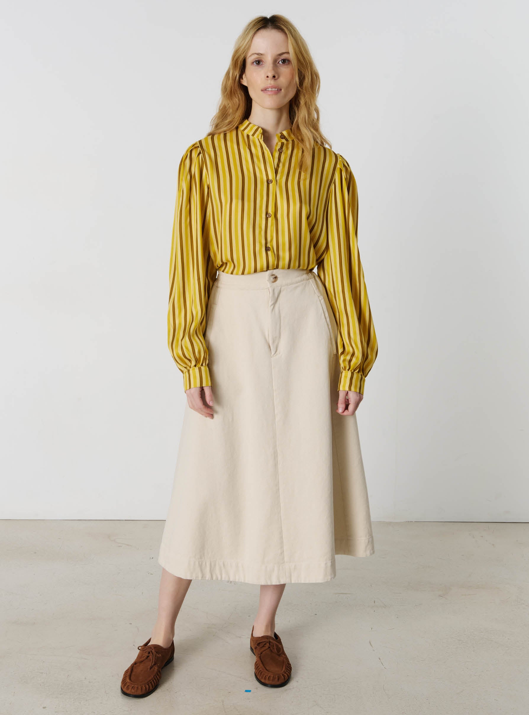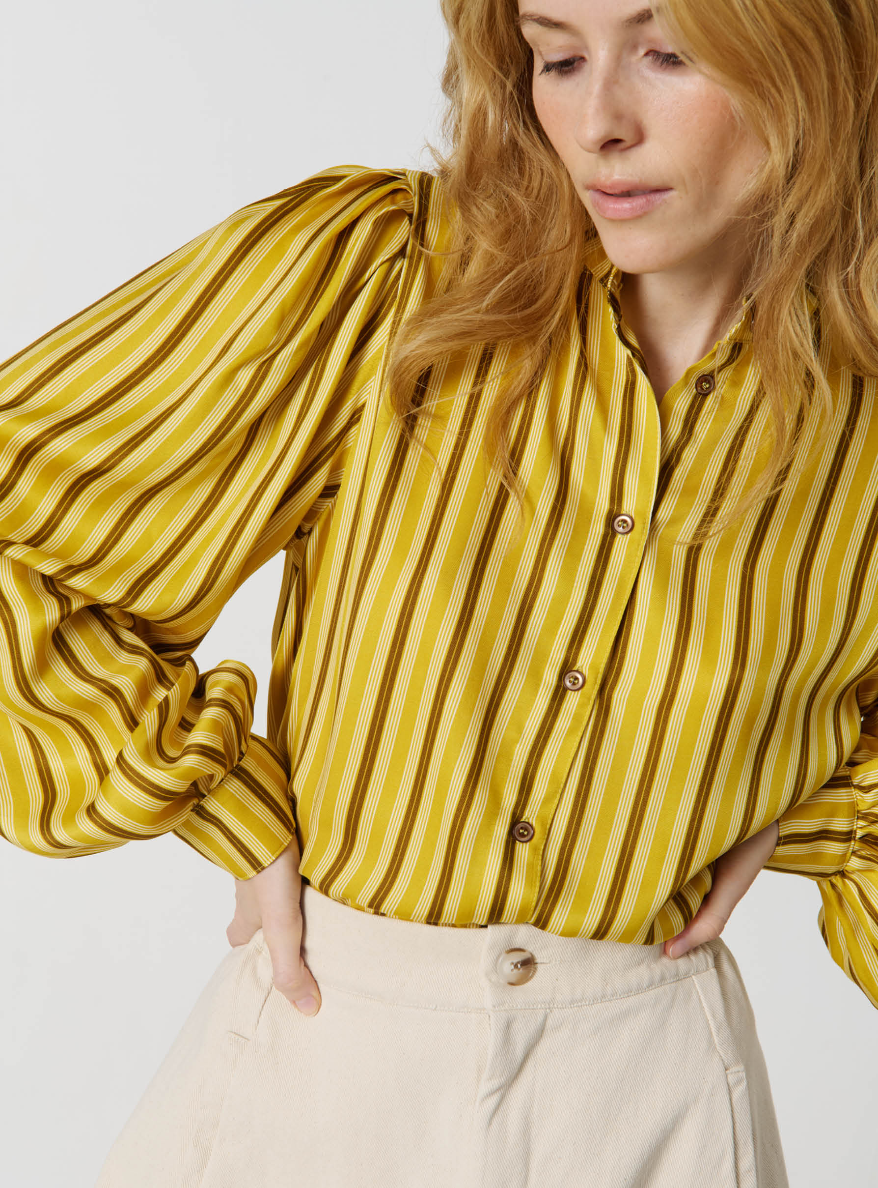 10 plis sur la tête de manche pour créer du volume. Manches ressérées dans le bas.