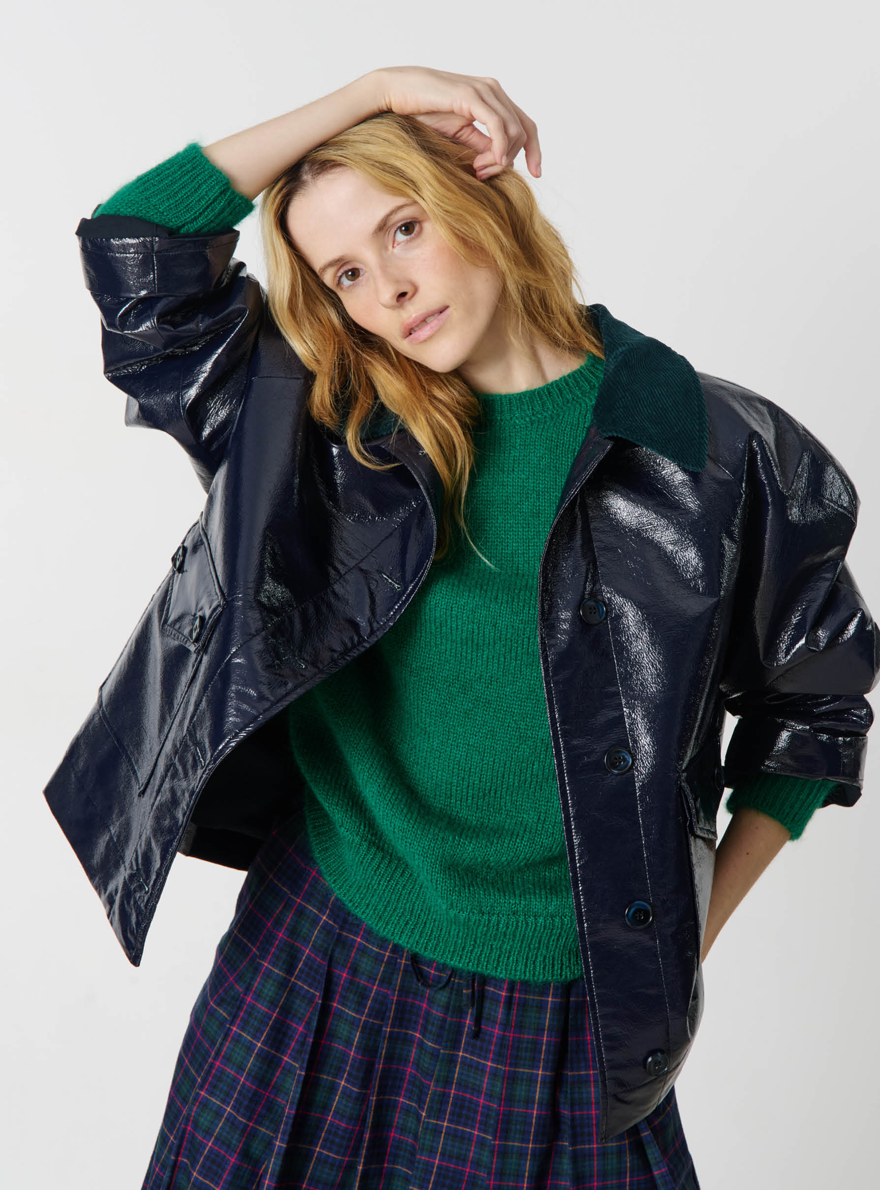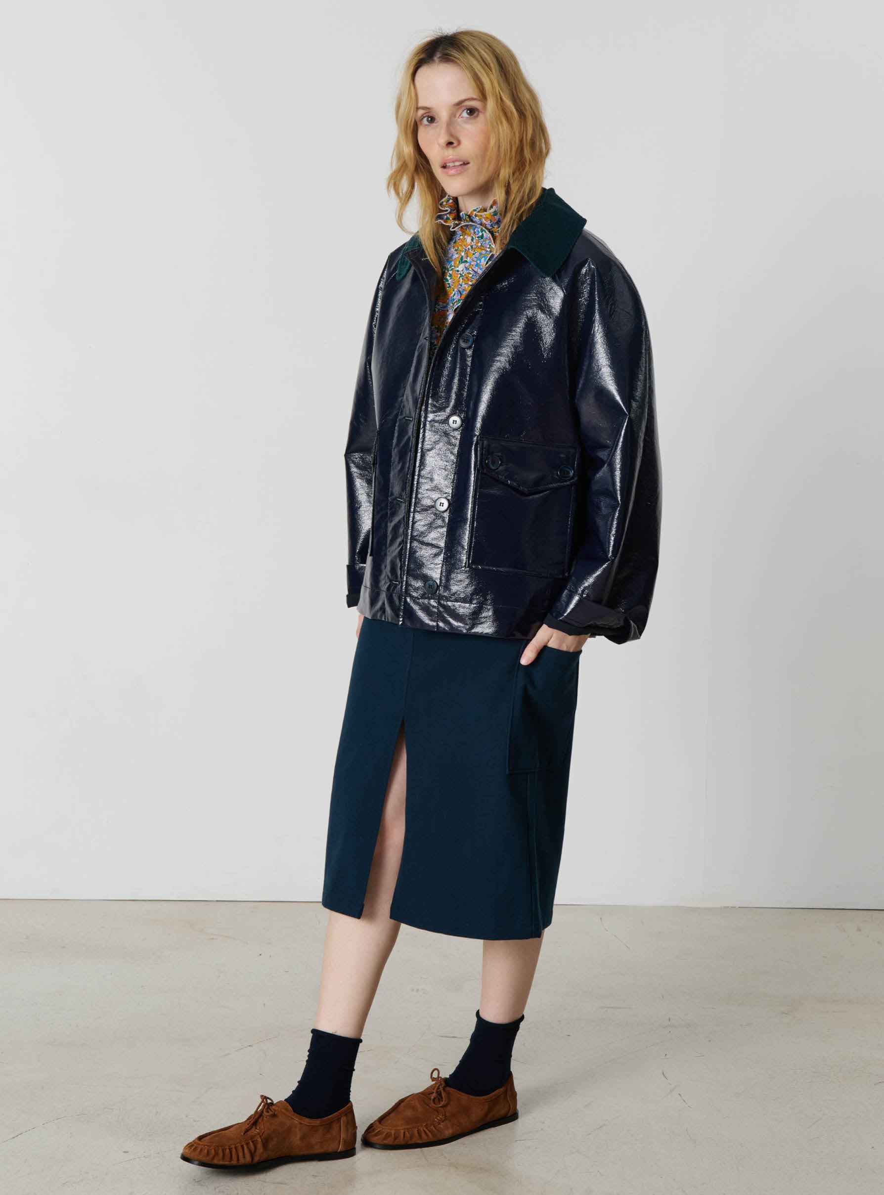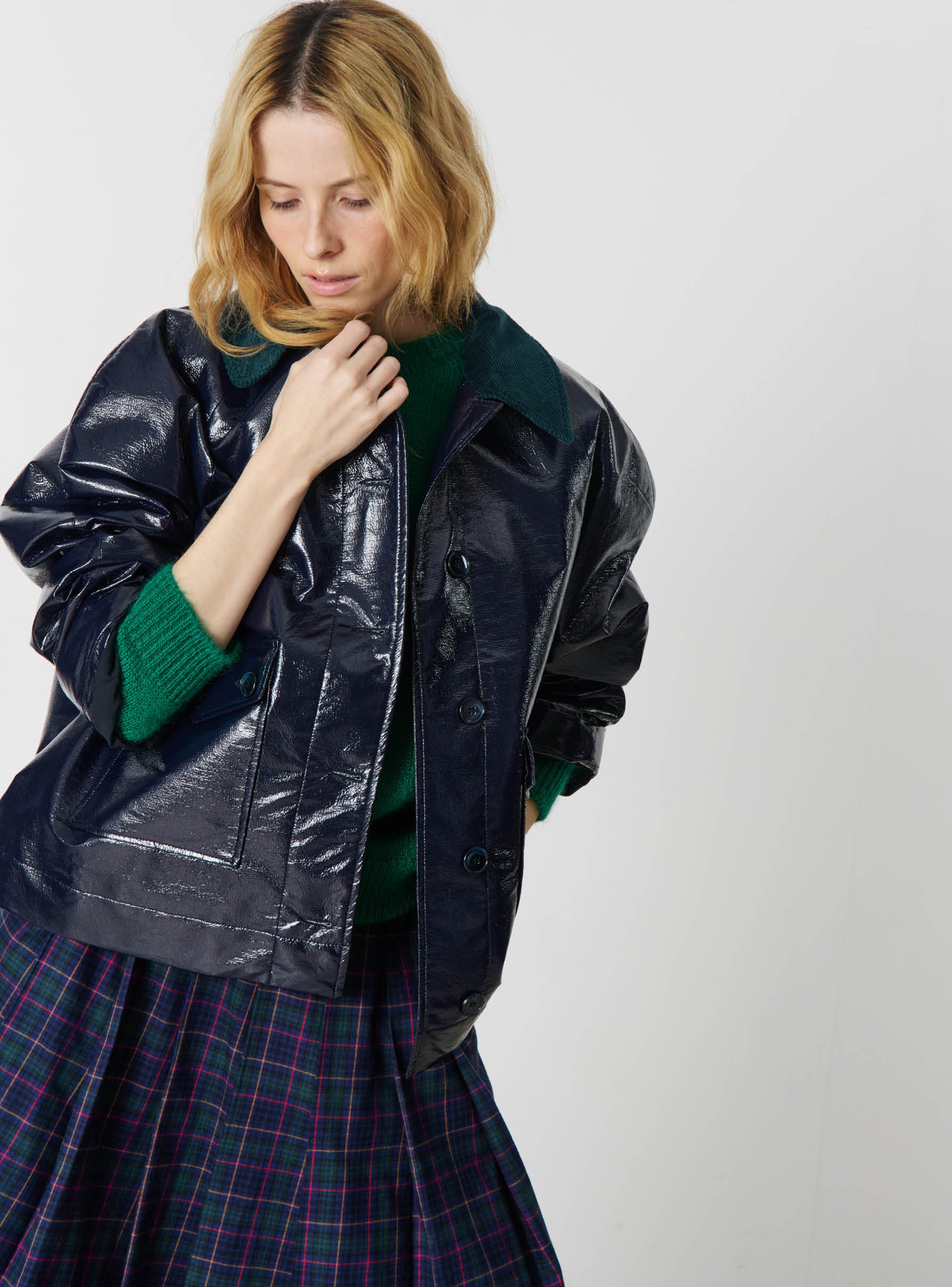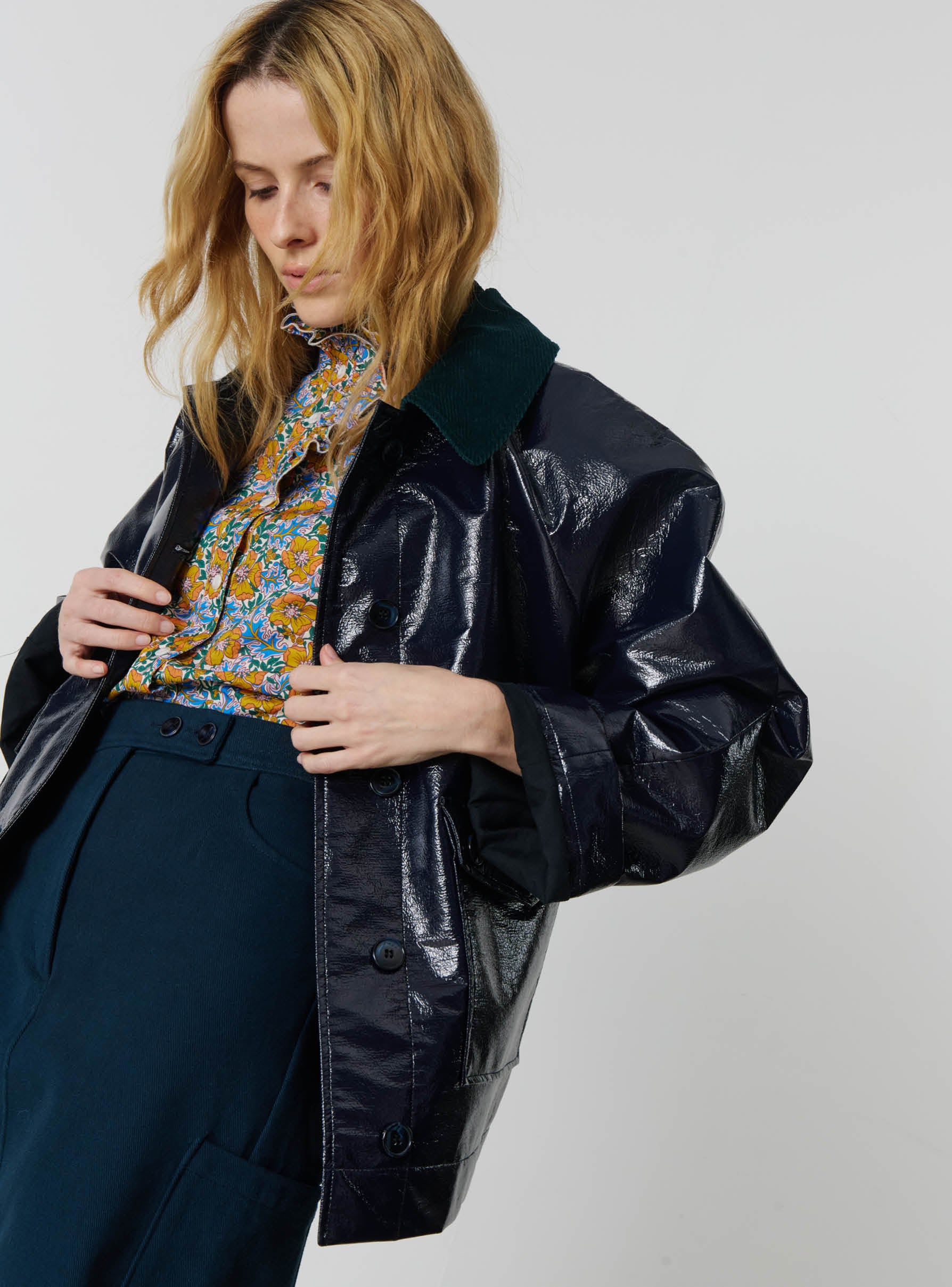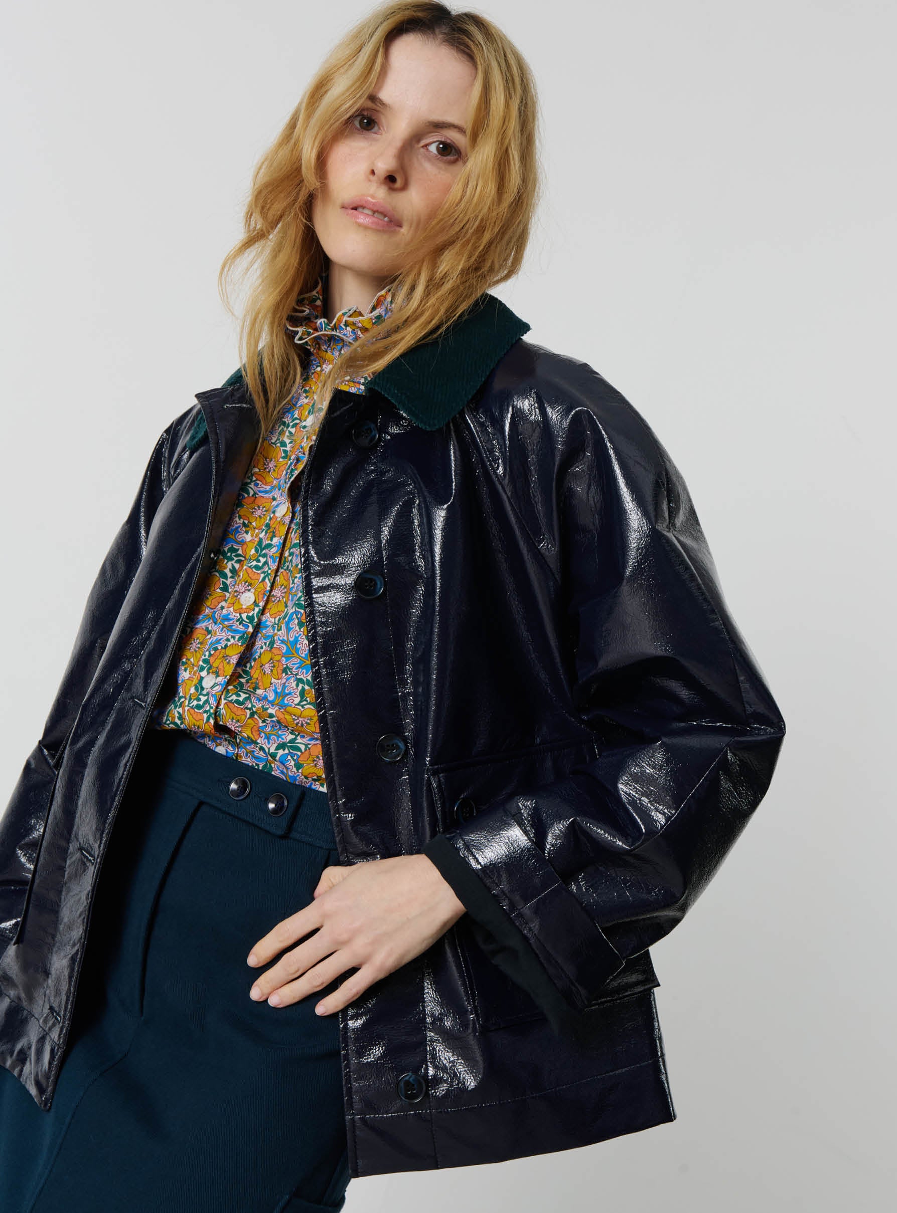 Vinyle léger et souple, avec entoilage doux en coton à l'intérieur pour un porté confortable. Matière non stretch.